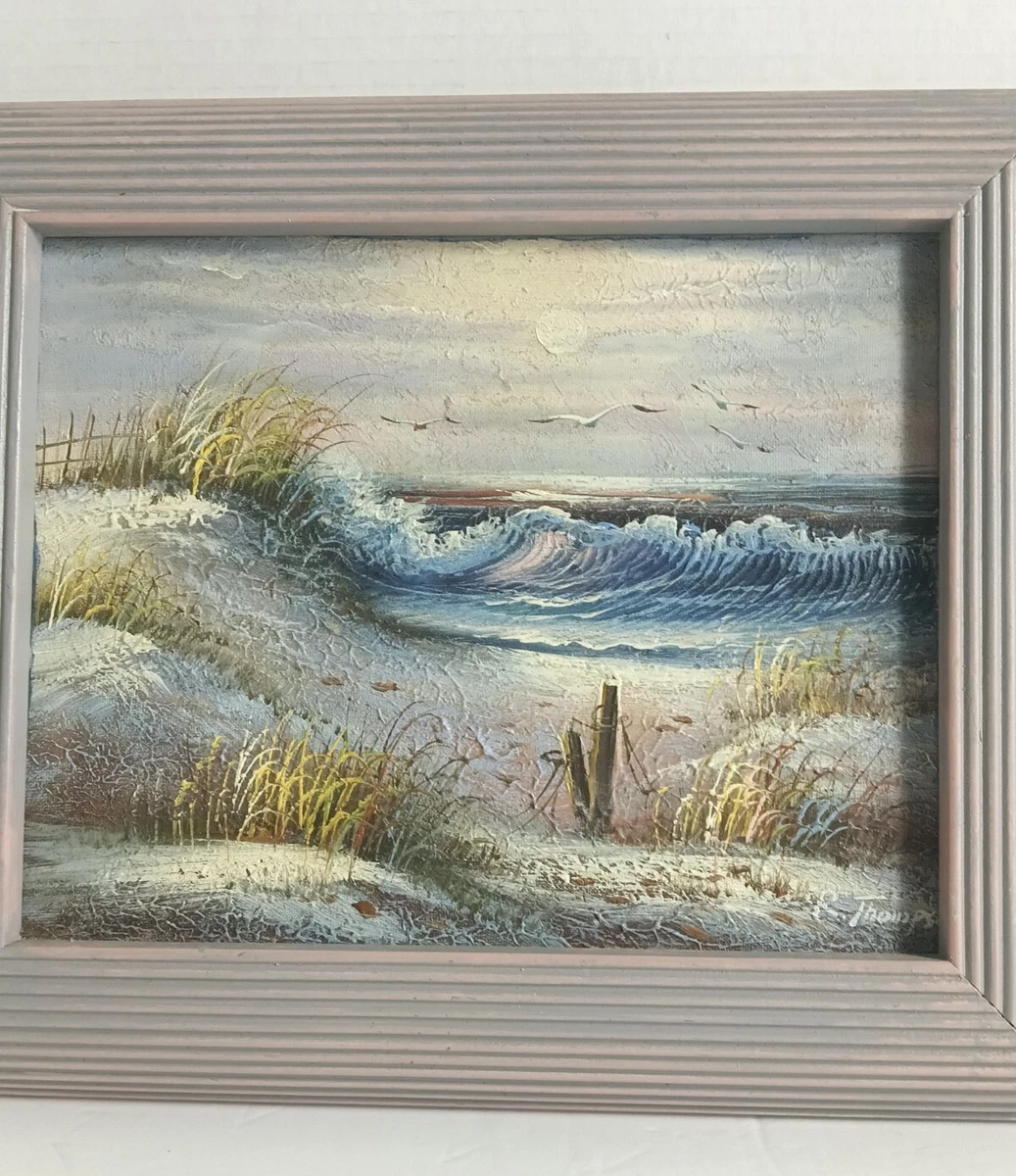 R Thompson Original Oil Painting Of Beach Landscape Framed Ebay