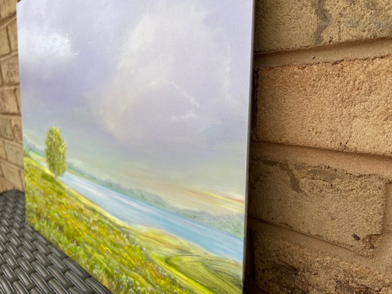 Original One Of A Kind Oil Painting Modern Landscape Artwork Tree Summer Field Bright Sky Violet Clouds Contemporary Art Gift Etsy